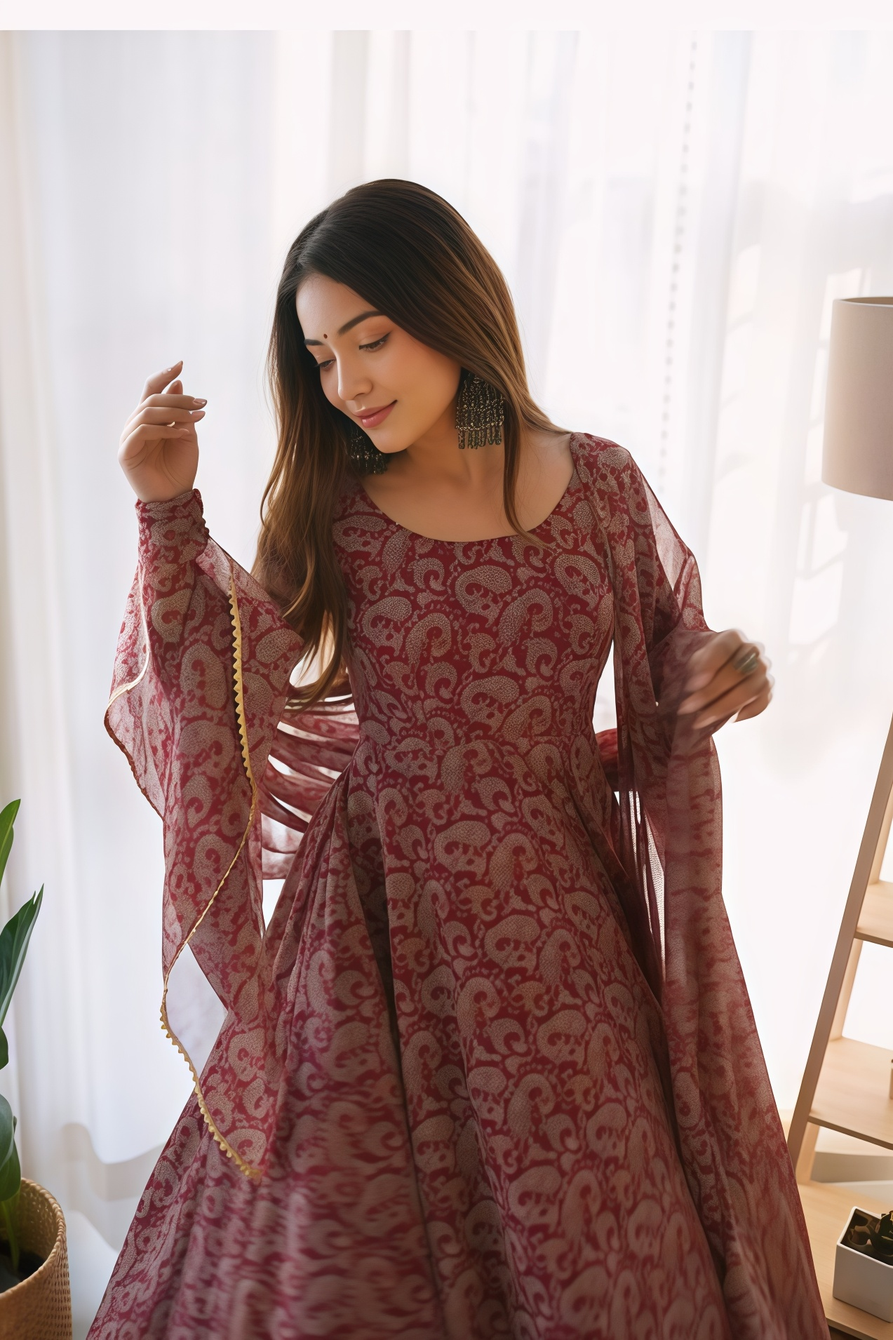 BEAUTIFUL PAISLEY ANARKALI PRINT GOWN WITH DUPATTA