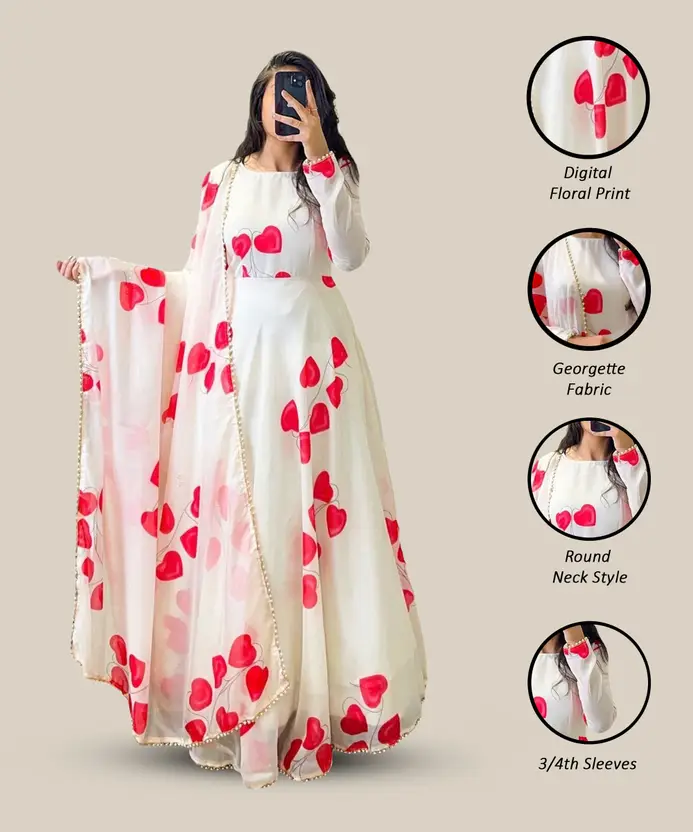 Other Details: New Trendy georgette with digital Printed Gown and Dupatta Set For Women